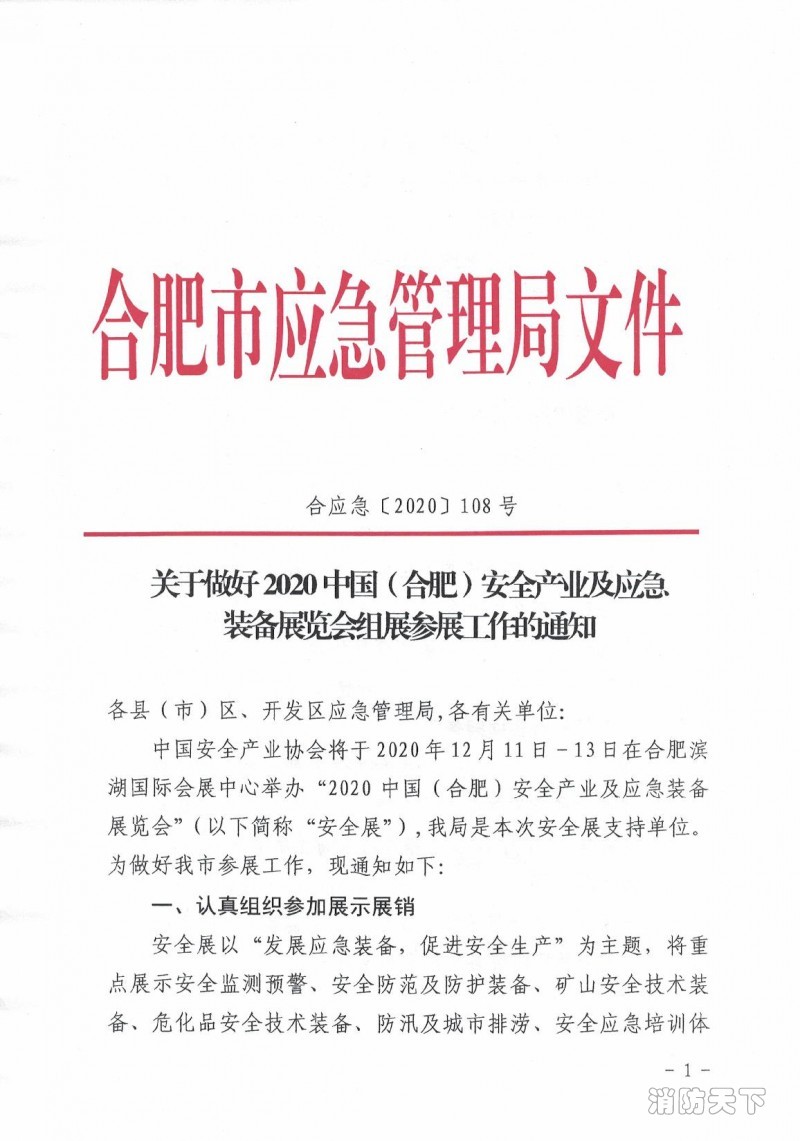 關于做好2020中國(合肥)安全產業及應急裝備展覽會組展參展工作的通知?