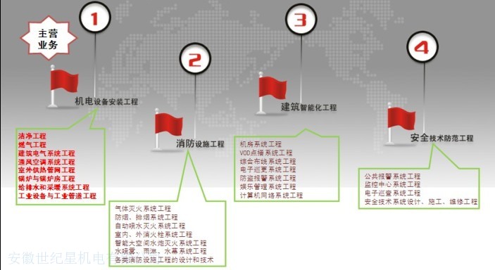 1、資質優勢 公司持有國家建設主管部門頒發的機電設備安裝工程專業承包一級、建筑智能化工程設計與施工二級、消防設施工程設計與施工二級資質,并不斷根據市場動態向其它領域資質延伸。