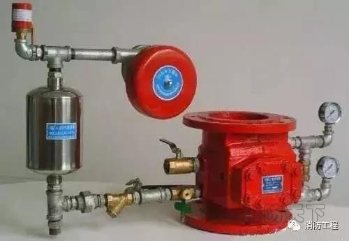 2. 濕式報警閥與水流指示有些不同,如果噴淋管道中如果水在流動,管道原有的靜壓會發生變化,會激發水力警鈴報警(它的原理可以參看一些閥門說明書),且壓力開關動作,從而來啟動噴淋水泵。