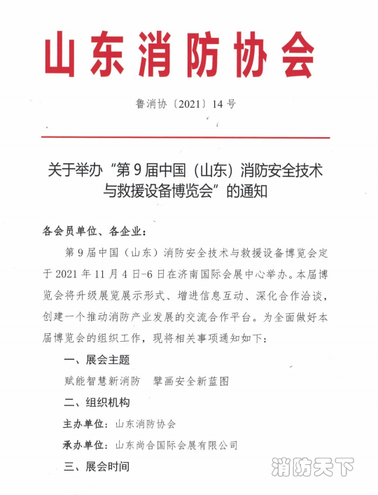 關(guān)于舉辦“第9屆中國(guó)(山東)消防安全技術(shù)與救援設(shè)備博覽會(huì)”的通知!