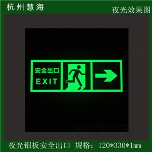 杭州慧海化工有限公開發的慧海牌夜光鋁板標牌是一種表面附涂有新型夜光材質的硬質膜板,屬低度顯示光源板,該夜光標牌同樣具有優秀的應急自發光功能,可利用絲網印刷技術在該夜光膜板上制作各類標志、圖象,從而為目前廣大的廣告制作商帶來一種全新的標牌制作材料。該系列專利產品不僅具有燈箱式安全標志的功用,而且無需電源裝置,安全耐用,在突然斷電的情況下,更能顯示其優良和獨有的安全指示性能,也可成功避免黑暗狀態下的各種突發狀態。慧海標志配有符合國際標準的指示圖形、圖案、尺寸與大小規范,可應客戶要求加工、訂做。
